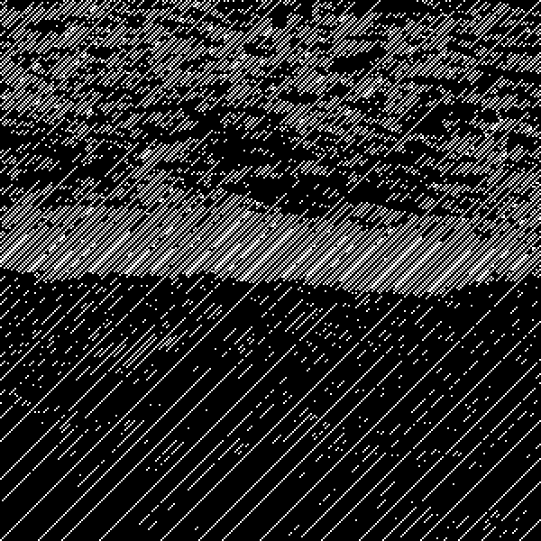 loackme is a French generative artist currently based in Amsterdam. After completing his PhD in Statistics and working as a researcher for some time, he made the decision to leave academia in 2018 and pursue his passion for digital art and graphic design. loackme's artistic practice is characterised by his love for monochrome and geometric designs, as well as animated loops. Amongst other things, he’s a self-professed 'dither enthusiast', using various dithering algorithms to create the illusion of a wide range of colours (or shades of grey) from a limited palette. The strong aesthetics and constraints associated with these algorithms are a constant source of inspiration for him.